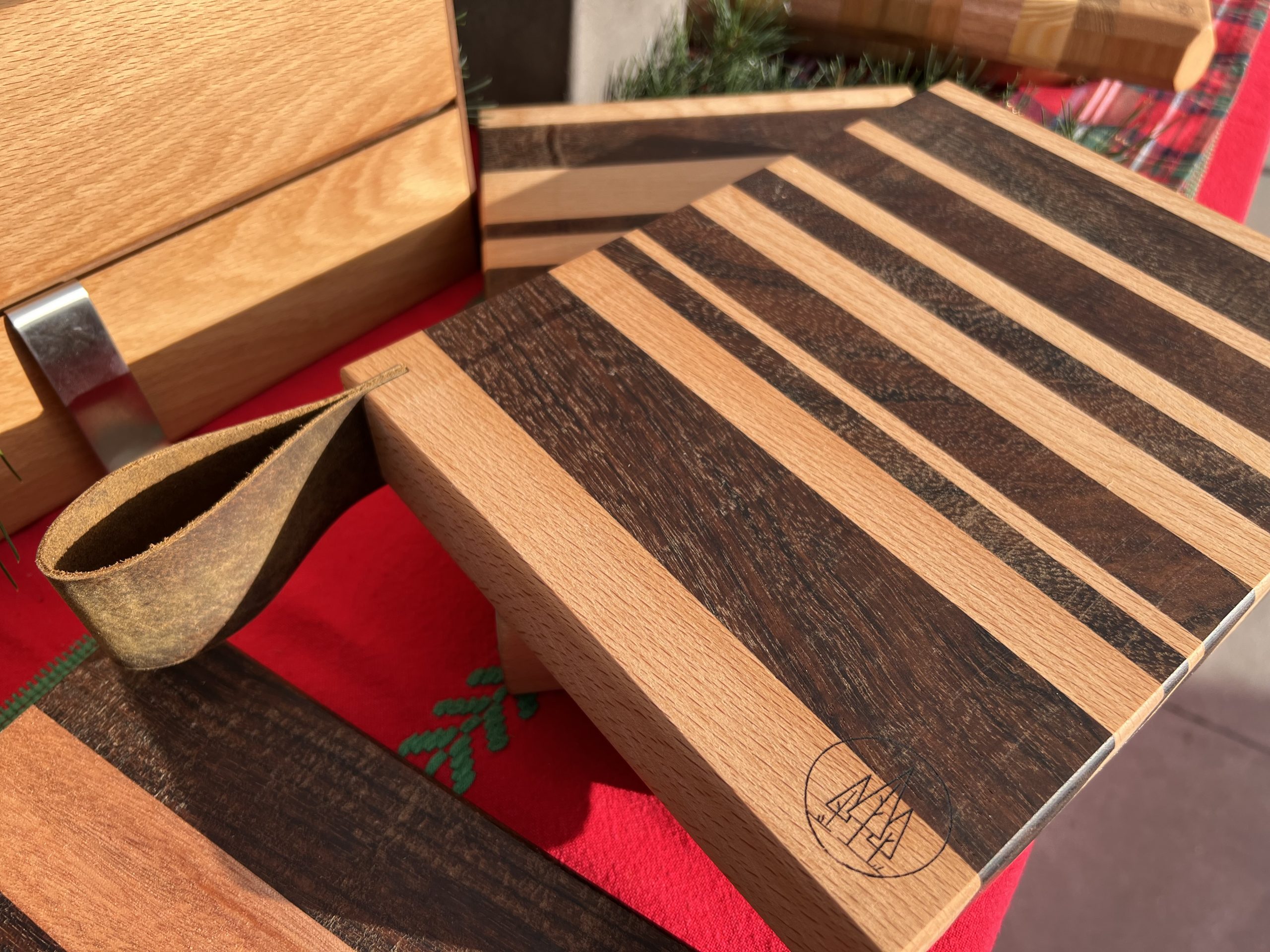 Il tagliere “Butcher” è realizzato con legno di noce nazionale e faggio.