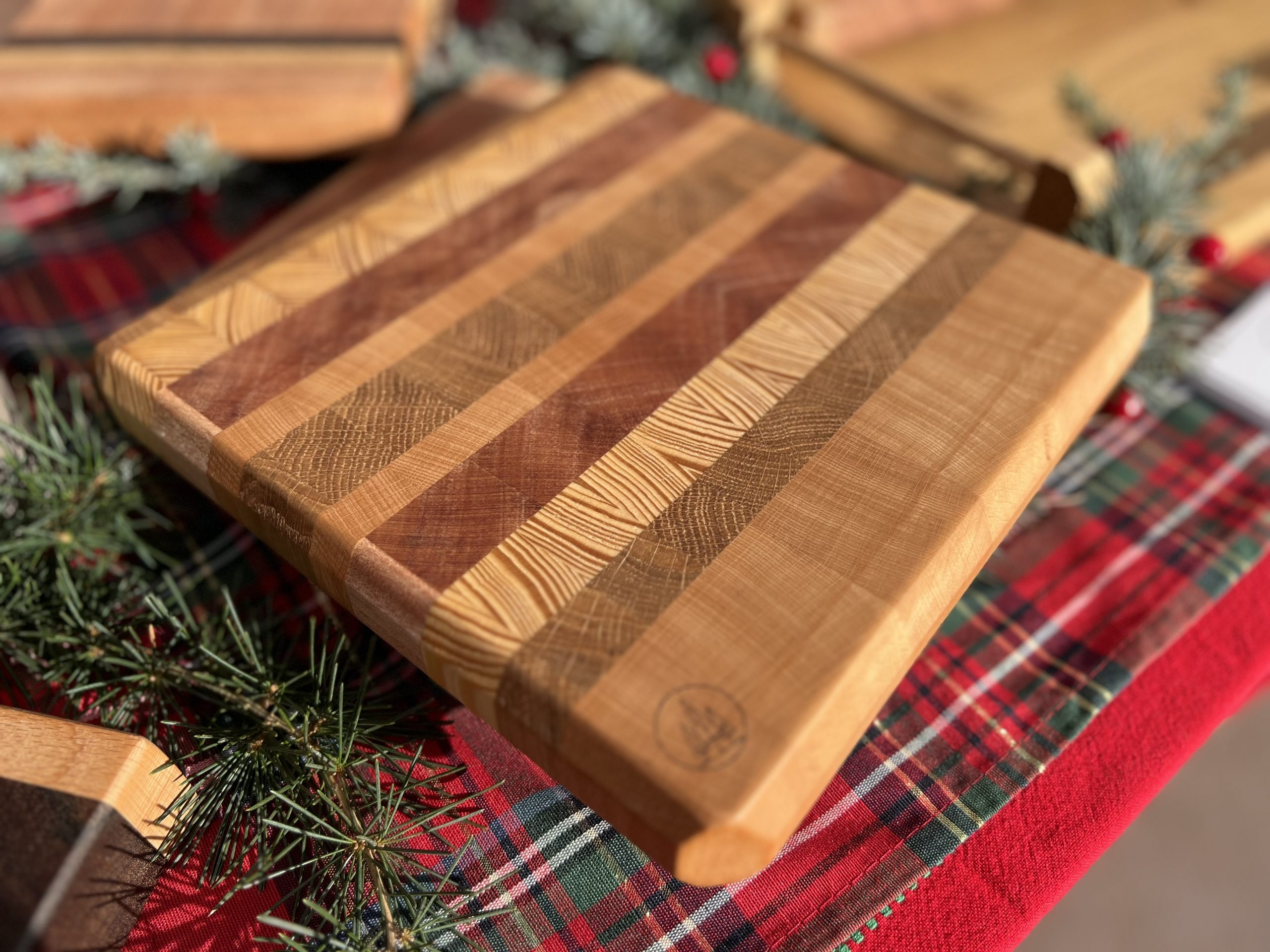 Il tagliere “Ghana” è realizzato con diverse essenze e con legno di testa il ché gli conferisce una maggiore resistenza al taglio.